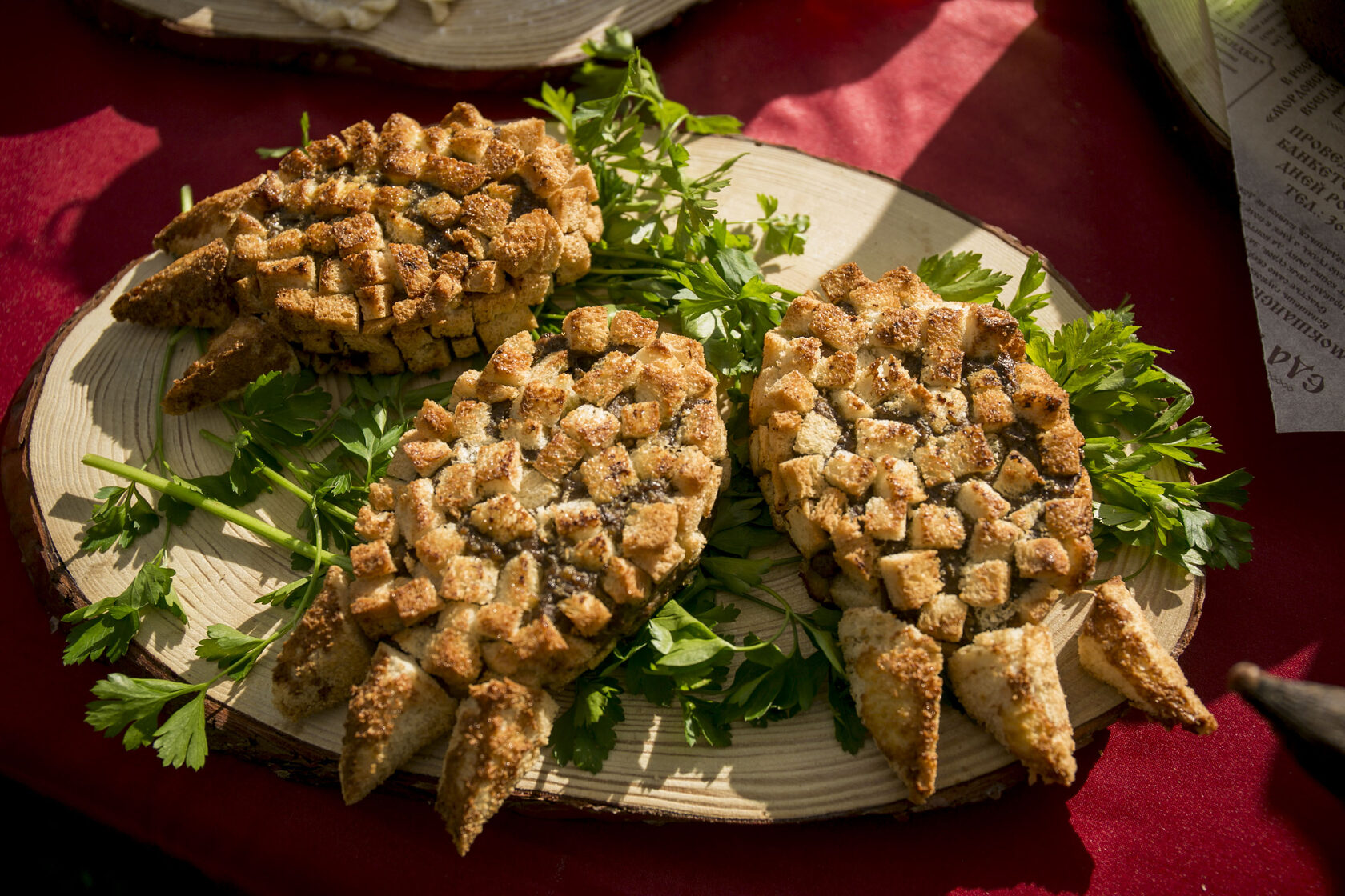 Свиную печень замочить в миске с молоком на 2-3 часа. Молоко слить. Печень прокрутить через мясорубку вместе со свининой. Лук и чеснок очистить от шелухи и очень мелко нарезать. Можно также лук и чеснок пропустить через мясорубку вместе с мясом. В мясной фарш добавить лук, чеснок, два яйца, муку, черный перец и соль по вкусу. Перемешать. Три ломтика хлеба подсушить в духовке и размолоть или наломать руками на мелкие кусочки. Оставшийся ломтик хлеба нарезать на тонкие длинные ломтики, которые потом будут когтями.